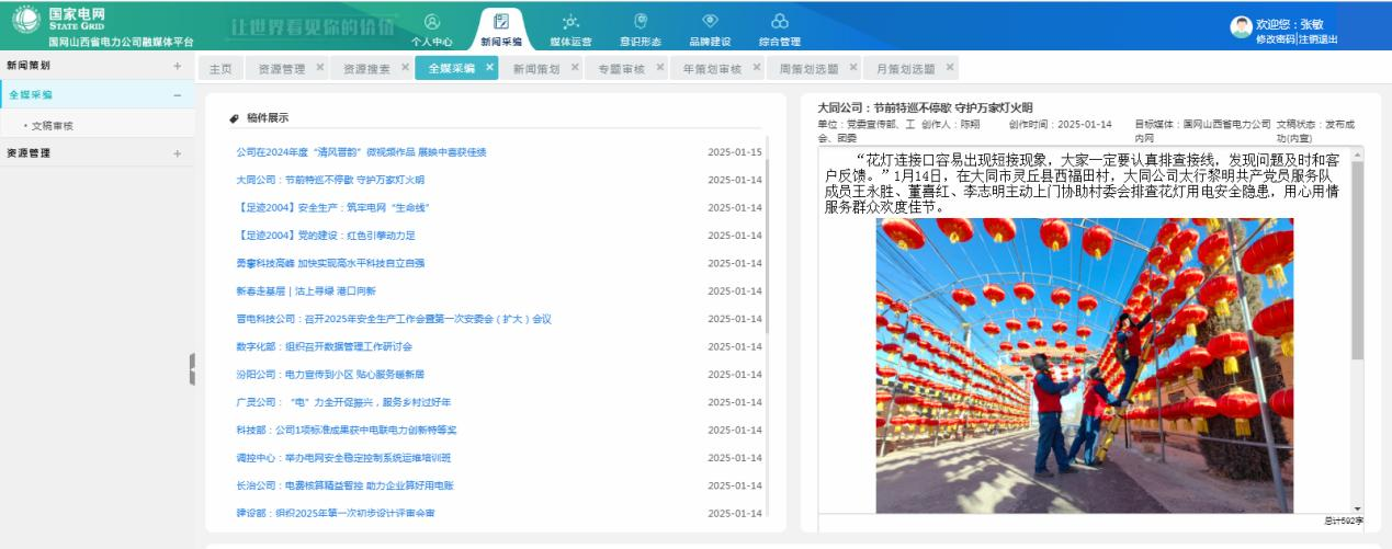 升級內(nèi)網(wǎng)圖片庫和融媒體平臺,關(guān)聯(lián)拍攝作品及視頻素材,供公司各部門/單位選擇應(yīng)用。遴選優(yōu)秀作品推薦參加全國品牌故事大賽、新華社國社之境——世紀(jì)光影攝影展、平遙國際攝影節(jié)。與人民攝影報、山西電視臺、運(yùn)城電視臺等媒體聯(lián)盟合作推廣傳播,不斷擴(kuò)展作品對外展示渠道,增加曝光度,提升傳播力。