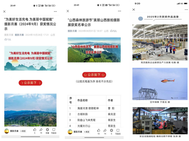 “電約拍”2.0項(xiàng)目實(shí)施以來,重點(diǎn)培養(yǎng)團(tuán)隊(duì)成員17名,輻射帶動80余名基層通訊員實(shí)戰(zhàn)能力提升,9名同志被山西攝影家協(xié)會吸收為會員。2024年,在人民日報、新華社、山西電視臺、山西日報、國家電網(wǎng)各類媒體平臺發(fā)表圖片594幅、視頻報道335條,分別同比增長430%、177%,宣傳績效得到有效提升,為企業(yè)高質(zhì)量發(fā)展?fàn)I造了良好的內(nèi)外部輿論環(huán)境。“電約拍”團(tuán)隊(duì)創(chuàng)作的《稻田喜事》《表里山河處處皆新色》等視頻作品獲得全國品牌故事大賽一等獎;短視頻“凌空一擊”全網(wǎng)點(diǎn)擊量超2億,評論、轉(zhuǎn)發(fā)次數(shù)過萬。人民攝影報先后以三個整版對“光影筑夢 點(diǎn)亮河?xùn)|”“與光同行 一路奮晉”“光影中的晉電力量”主題進(jìn)行圖文報道。