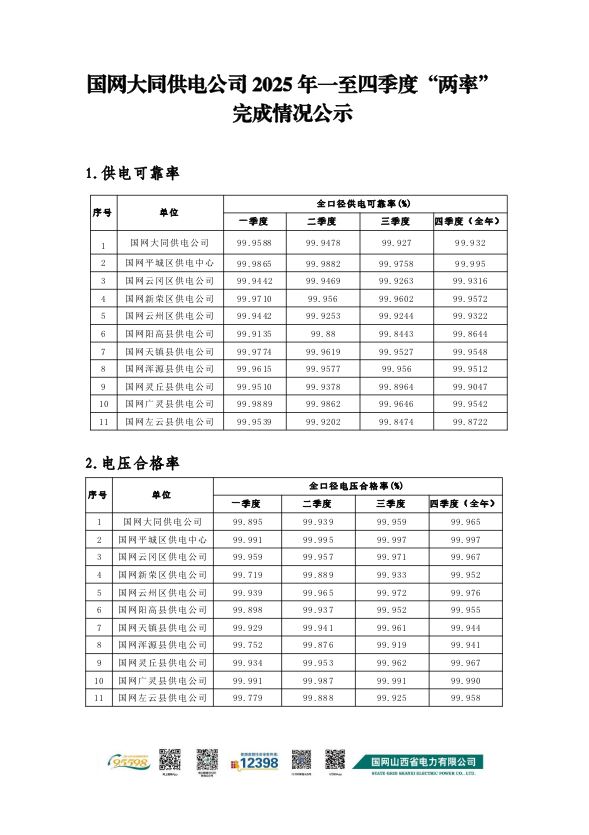 國網(wǎng)大同供電公司2025年四季度“兩率”完成情況