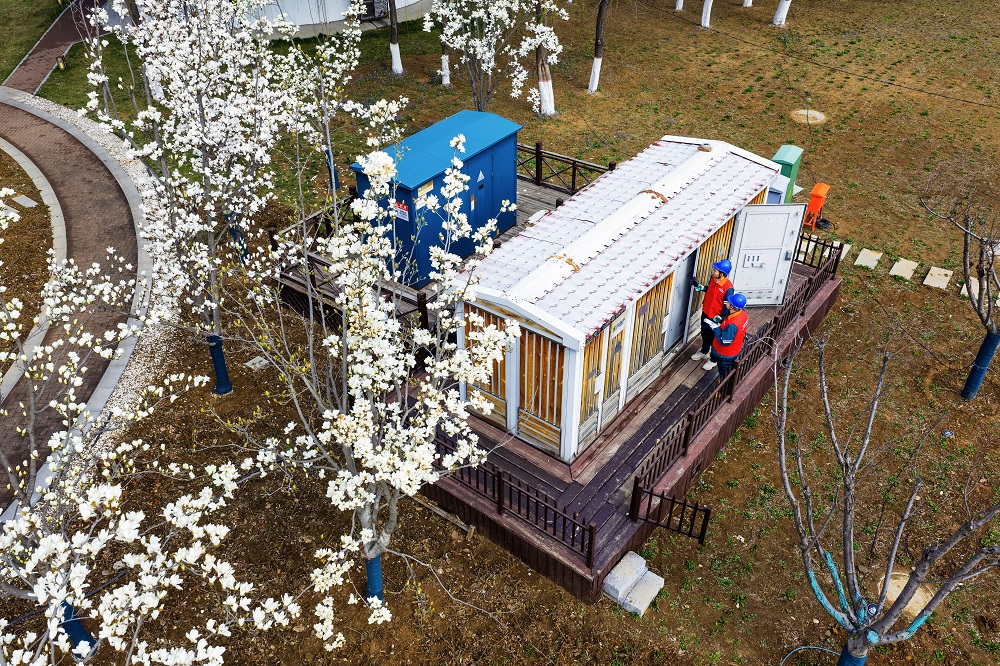 國網(wǎng)長治供電公司員工在國家城市濕地公園對配電設施進行專項巡查,筑牢景區(qū)用電安全防線。