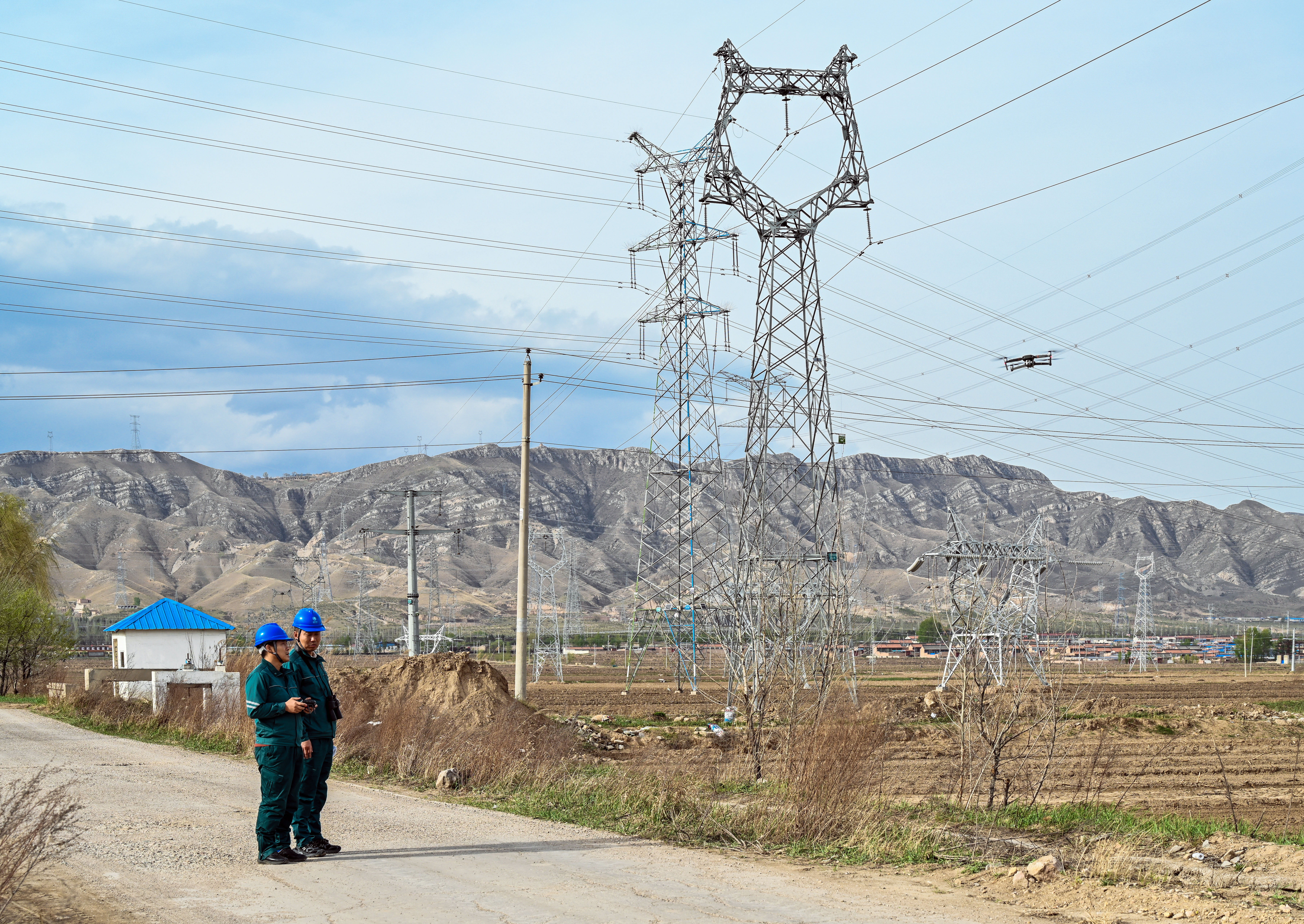 3月31日,在朔州市山陰縣境內(nèi),一架無人機(jī)沿著輸電線路通道飛行,朔州供電公司輸電運(yùn)檢中心運(yùn)維人員緊盯監(jiān)控屏幕,仔細(xì)排查線路周邊火情隱患,實(shí)時(shí)回傳線路設(shè)備運(yùn)行數(shù)據(jù),全力防范山火對(duì)電網(wǎng)安全的侵襲。